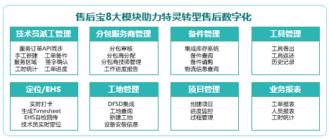 1、产品为楼宇空调系统,客户要求响应及时性高,遇到设备故障要求2小时内必须响应,技术人员及时上门处理;2、标准化、专业化的售后服务是特灵的竞争力,但工作流程依然通过传统excel和纸质单据进行管理;3、派工计划未通过系统管理,人员利用率不可控,导致运营和管理成本预测不准确。1、通过系统减少过去人工的管理方式,派工效率提升200%,服务运营管理人工成本减低50%;2、售后宝系统提供的八大模块功能助力特灵实现售后数字化转型。